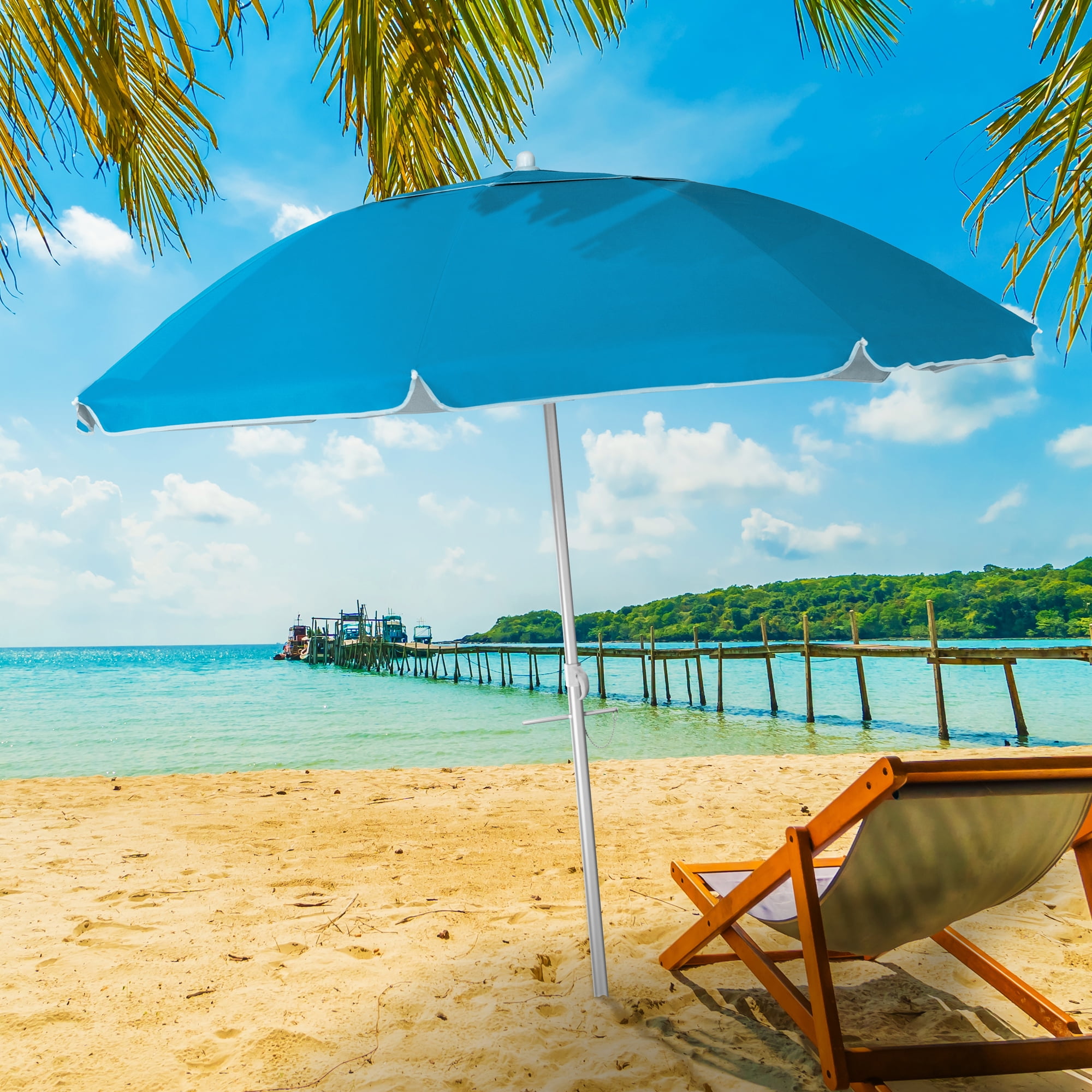 Beach Umbrella 65ft Beach Umbrella with Sand Anchor Tilt Mechanism Portable UV 50 Protection Beach Umbrella for Patio Garden Beach OutdoorSunshade Umbrella with Carry Bag Wide blue strip 43 out of 5 stars.