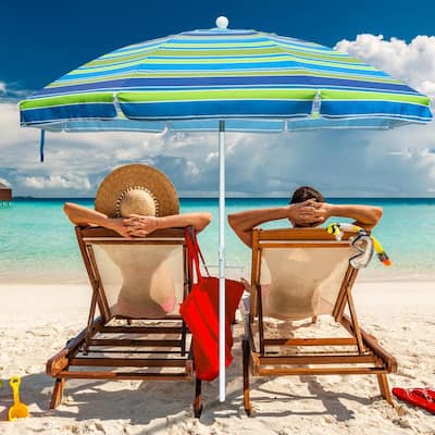 7ft Portable Beach Umbrella With 360 Degree Tilt By Pure Garden Sand Anchor Included Overstock 26395400